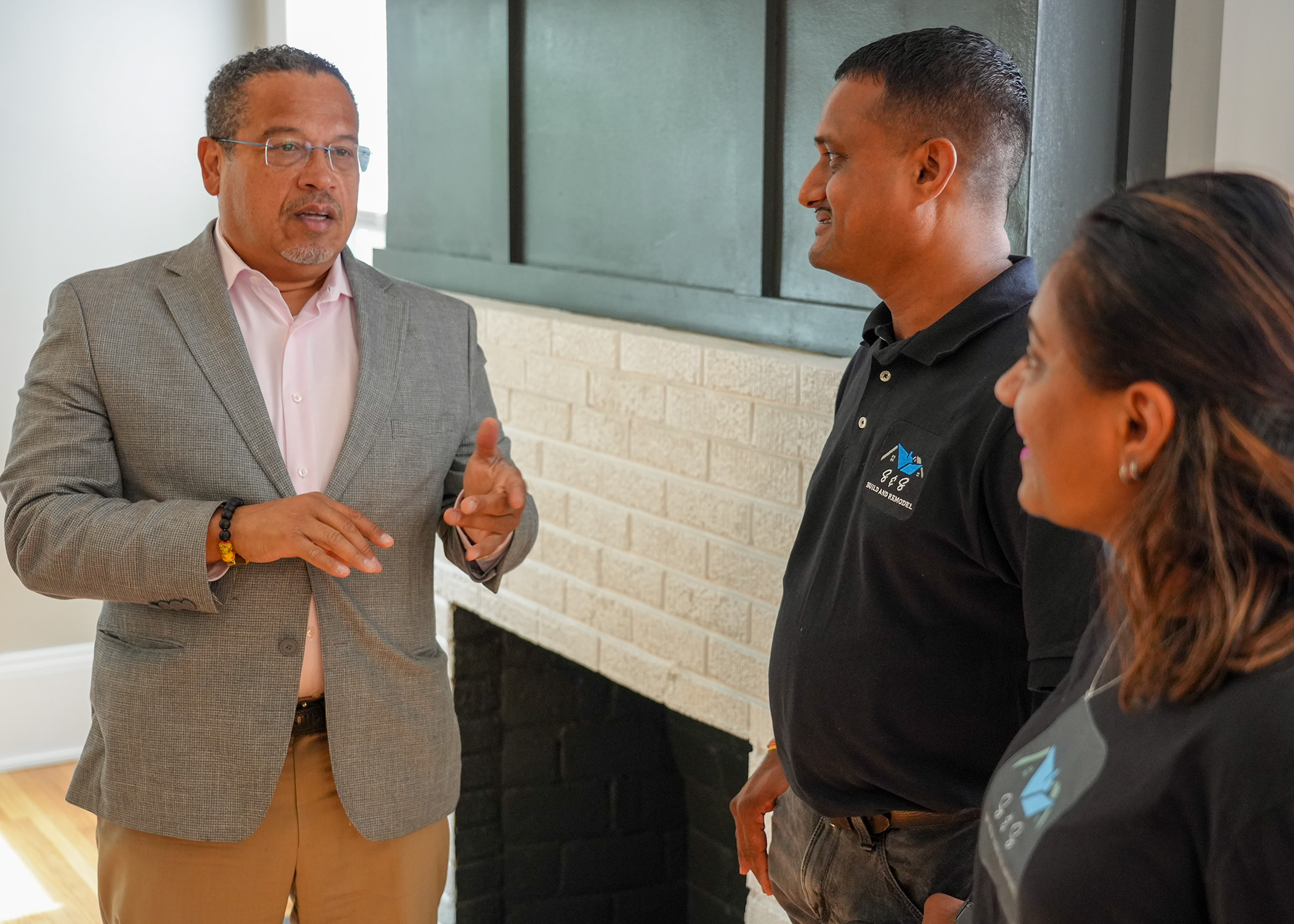 Attorney General Ellison, Minneapolis Mayor Jacob Frey, and Minnesota Housing Commissioner Jennifer Ho joined community partners in September to celebrate the first completed home by a non-profit developer in the portfolio.